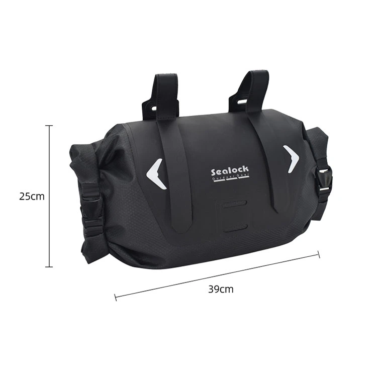 Vår Sealock Bike Handlebar Bag Waterproof Bike Front Bag For Mountain Road har en unik dobbeltsidig sammenleggbar design, med et stilig og praktisk utseende. Innvendig foret med støtdempende PU-puter, kan den beskytte telefonen, lommeboken og andre nødvendigheter mot utilsiktet fall. Den nylig oppgraderte stroppdesignen forhindrer bevegelse og holder vesken sikkert på plass mens du sykler.